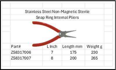 Stainless Steel Anti-Magnetic Snap Ring Internal Pliers Sterile 316 & 304 SS
